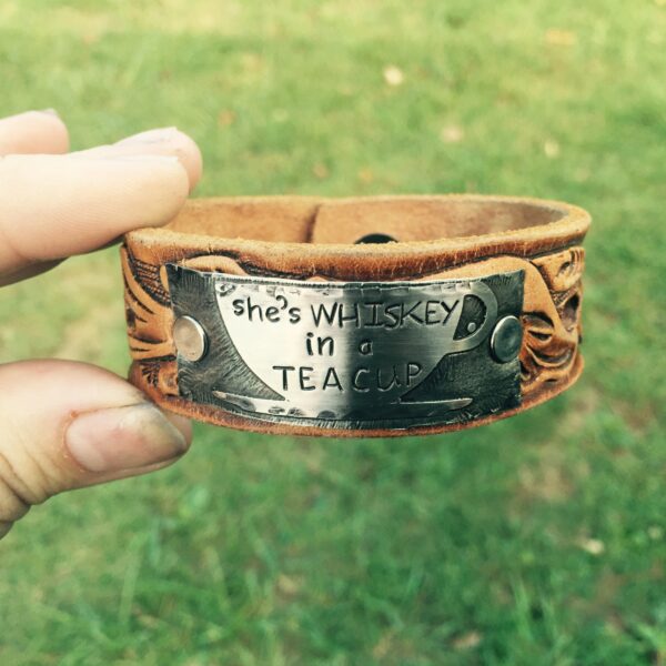 “She’s whiskey In a teacup,” Genuine leather Cuff bracelet