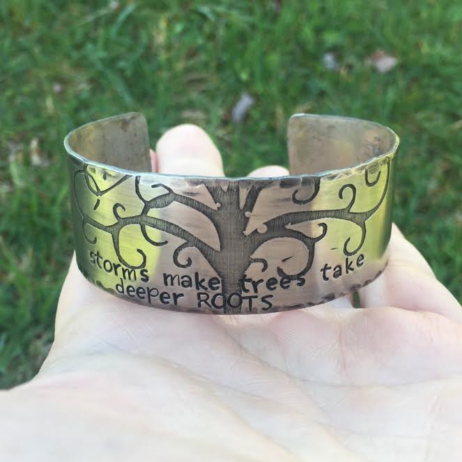 Unique etched Tree cuff bracelet hand stamped with a quote by Dolly Parton.  Adjustable fit.