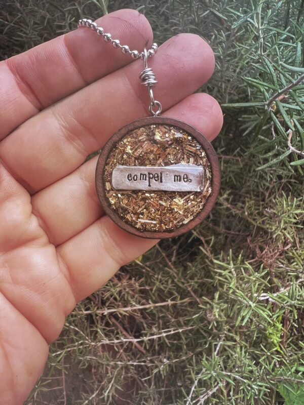 The vervain is set in resin, accent with 24k gold flakes, on an antique silver plated chain with a lobster clasp closure.